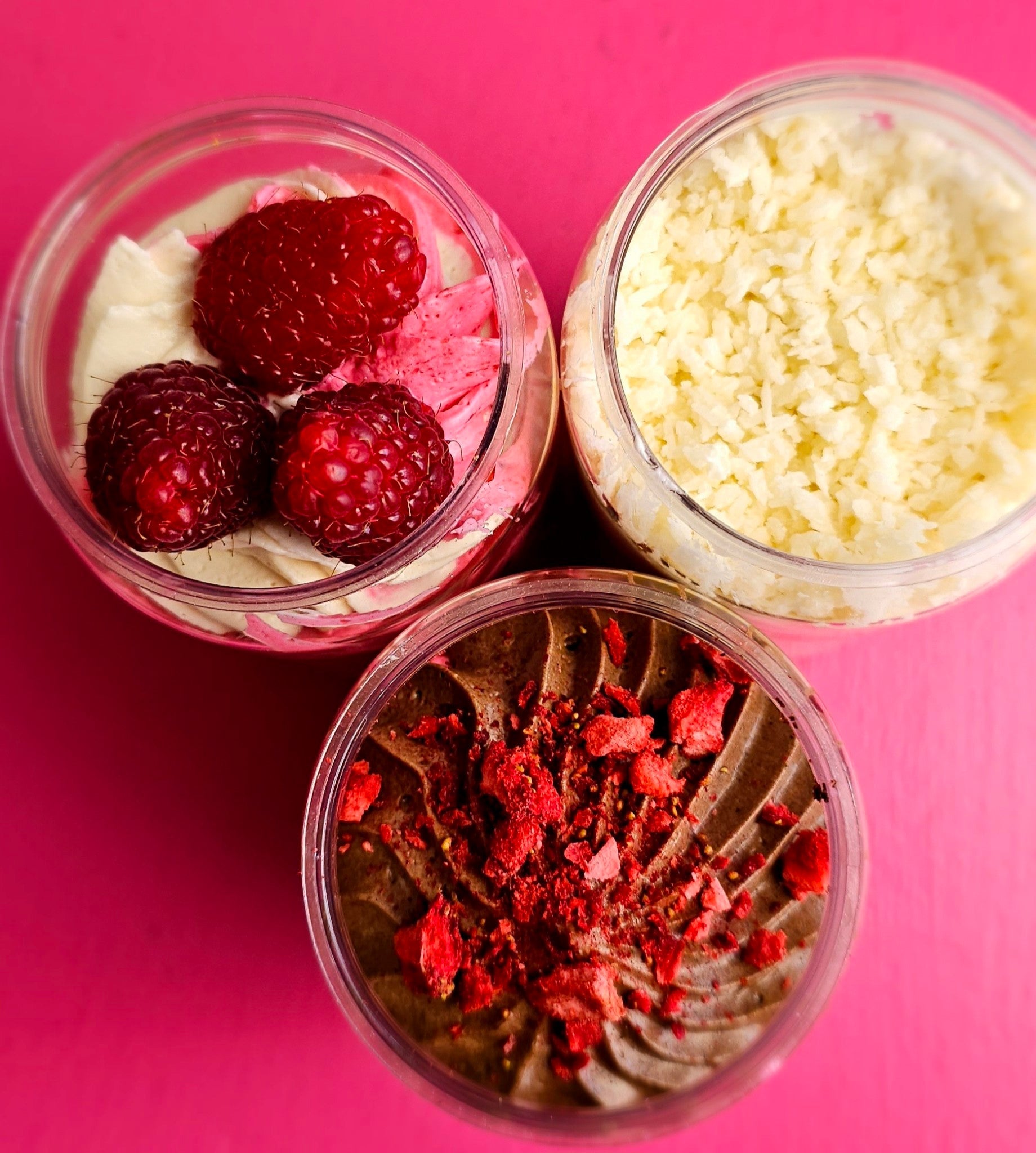 Rice Flour, Brown Rice Flour, Potato Starch, sorghum Flour, Tapioca Flour, Xanthan Gum, Butter, Milk, Organic Coconut sugar, Baking Powder, Himalayan Salt, Vanilla, organic coconut nectar, organic shortening, organic coconut milk, organic raspberry jam.